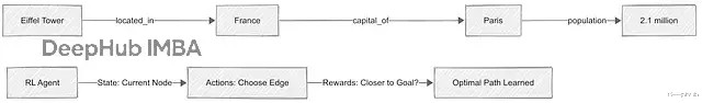 但是问题就来了:面对"埃菲尔铁塔所在国家的首都人口是多少"这种query,Agent需要跳好几步——从Eiffel Tower → located_in → France → capital → Paris → population。路径很多,怎么选最优的?如果暴力遍历,那么在大规模KG上根本跑不动。